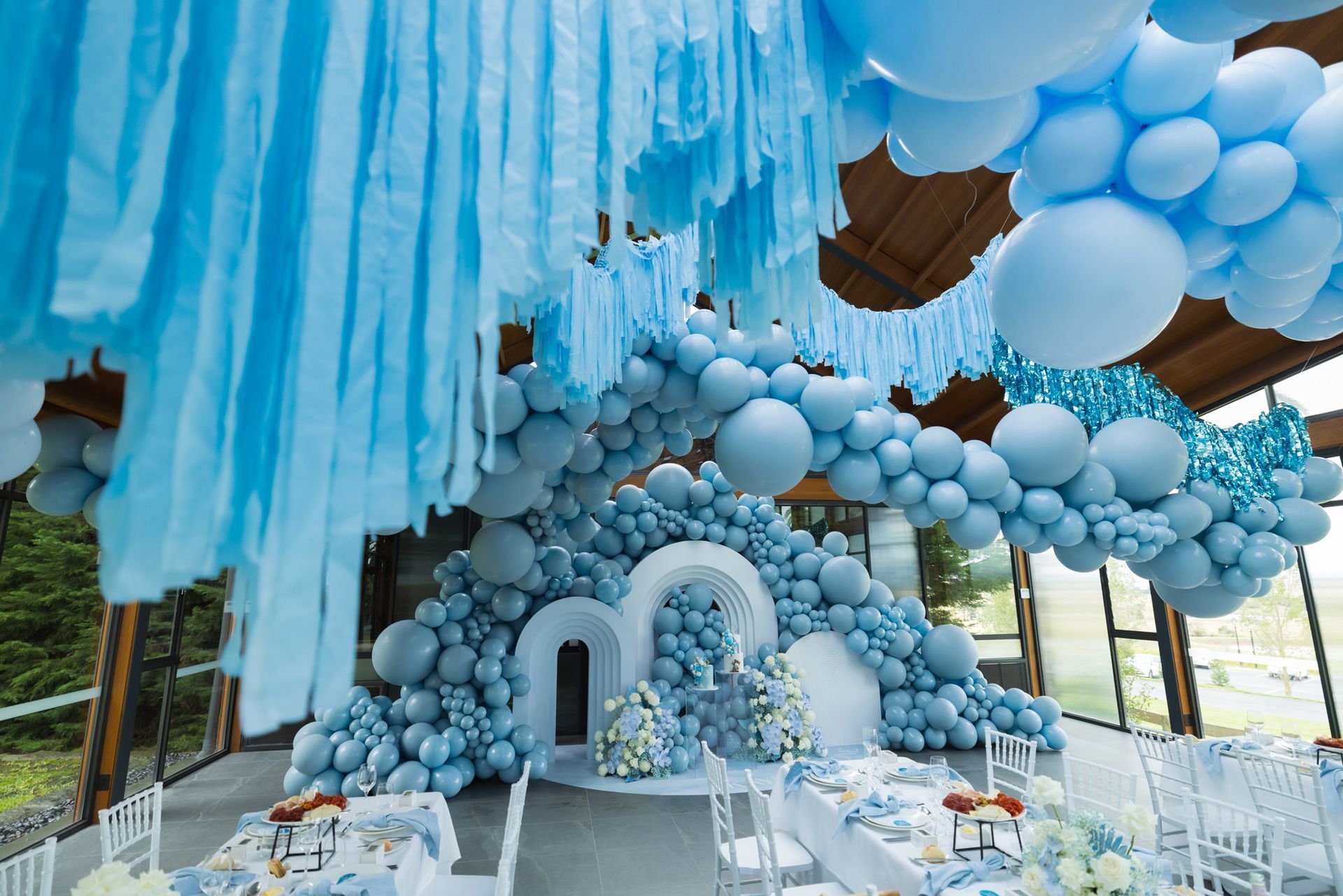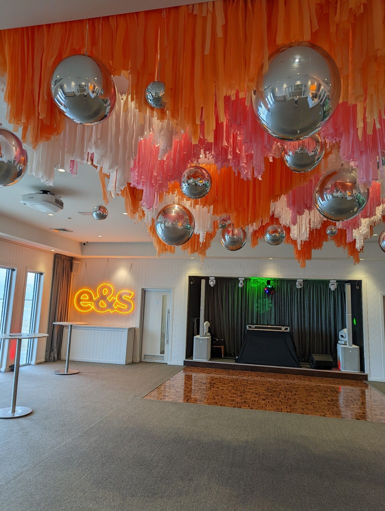 - Our balloons make unique stage settings. We can create an installation around the podium or to show off any products you are introducing. We also provide sequin and shimmer walls as a background, which will allow whatever you are showcasing to pop. Your imagination and our creative input are all that you need to host a spectacular event.