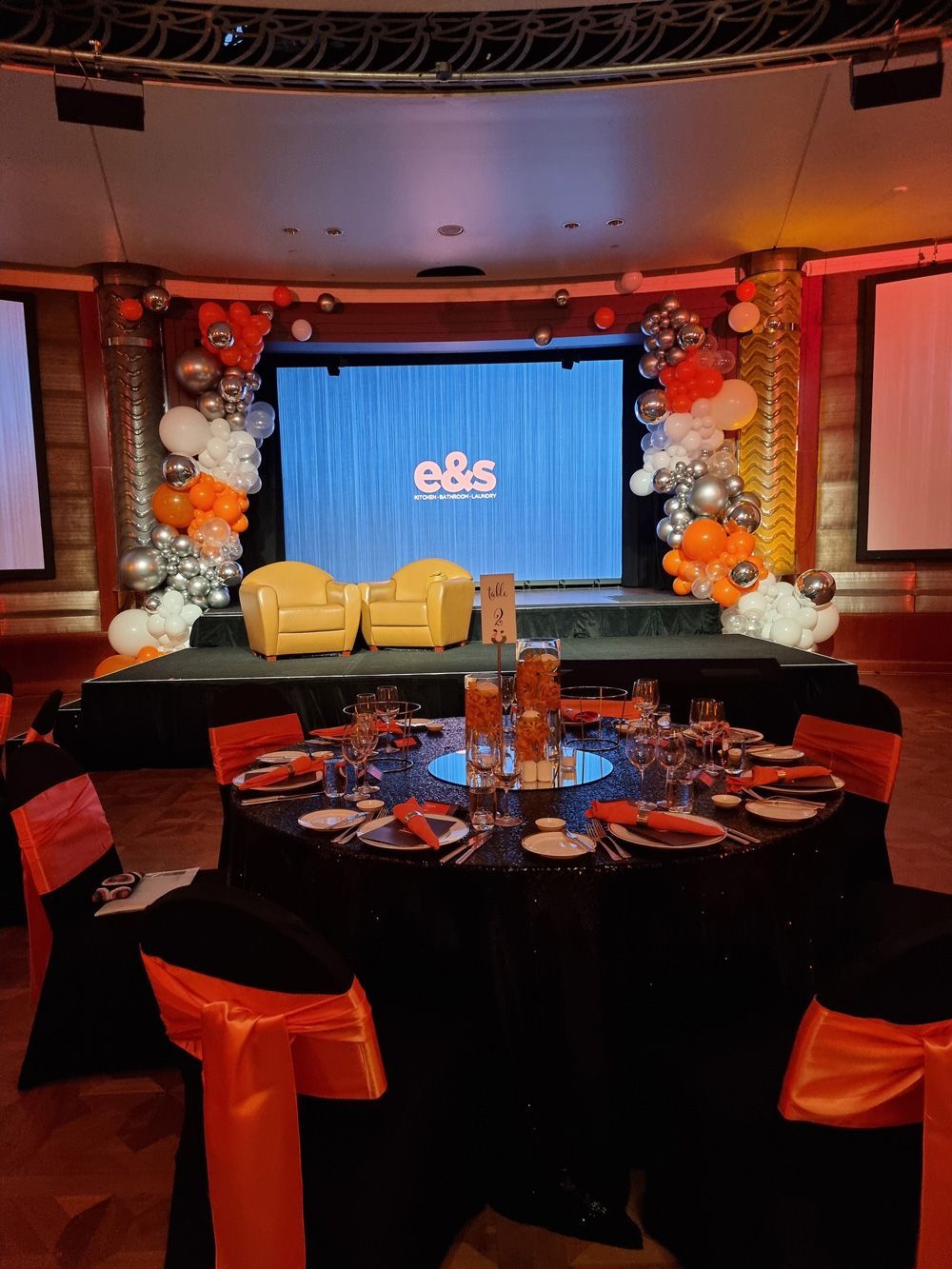 - Balloon centrepieces transform bland hotel ballrooms into an exciting event. Your banquet room or conference room becomes a beautiful and engaging event space as colour floats from the centre of the table in sizes and colour schemes complementing your theme. Gold and silver balloons provide a sophisticated look against black tablecloths. If you choose a more relaxed theme, then we could create a playful assortment of balloons. Whatever you want, each person who enters will glance up and smile.